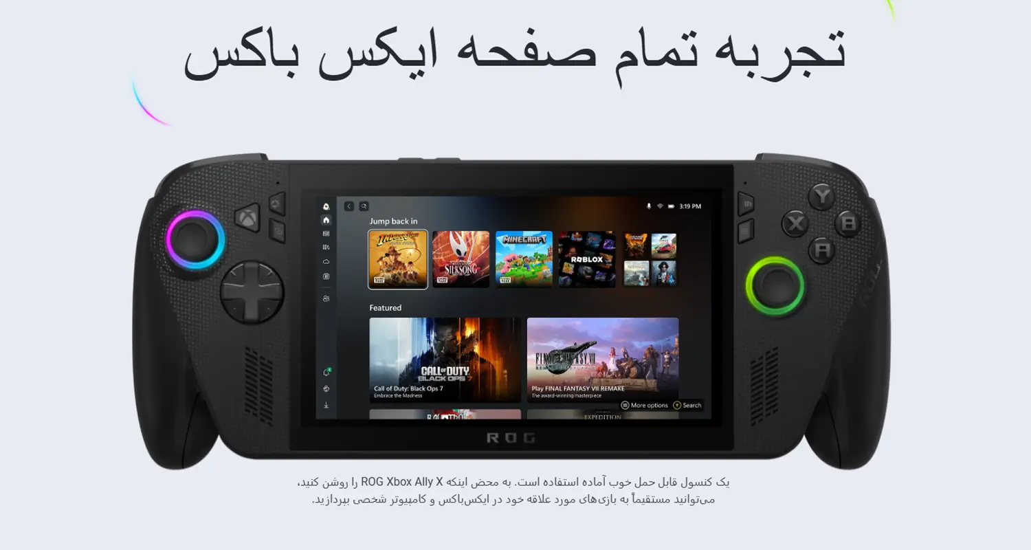 ✨ ROG Xbox Ally X 2025 تنها یک کنسول دستی نیست؛ این دستگاه پلی میان دنیای کنسولها، رایانههای شخصی و بازیهای ابری است. هر جا که باشید، دنیای بازی در دستان شما خواهد بود.